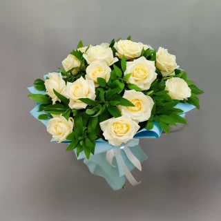 Величественный и изысканный букет "Грин роуз" создан для тех, кто ценит простоту и безупречный стиль. Кремовые розы, олицетворяющие нежность и чистоту, щедро украшены зеленью, добавляющей свежести и жизненной энергии. Изысканная, спокойная упаковка идеально сочетается с цветами, создавая гармоничный ансамбль, который дарит ощущение комфорта и благополучия. Этот букет станет прекрасным подарком в самых важных жизненных моментах или просто для выражения своей глубокой благодарности и уважения. "Элегантная Гармония" - идеальный выбор для ценителей красоты и элегантности.